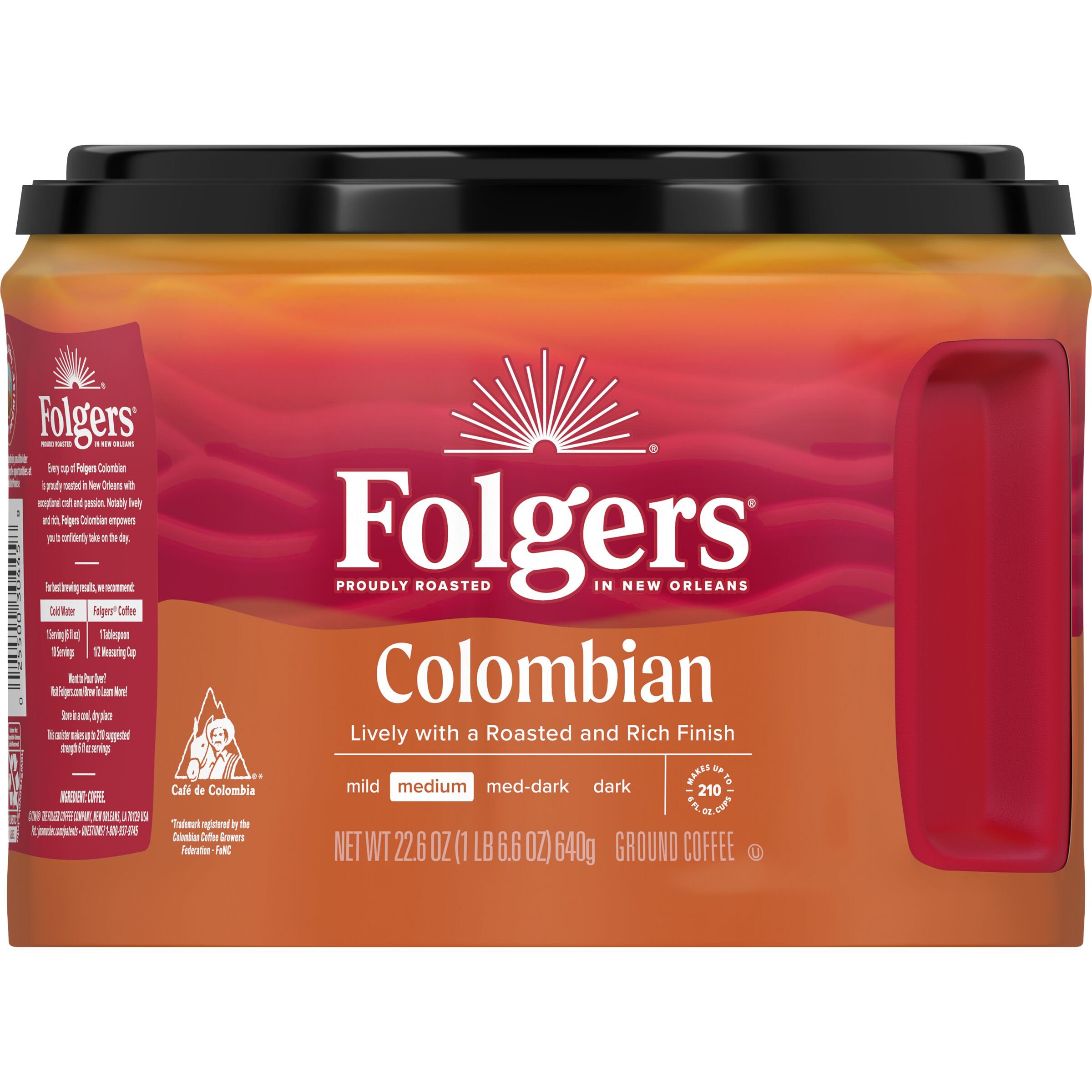 Folgers 100% Colombian Coffee, Medium Roast Ground Coffee, … Contains one (1) 22.6-ounce AromaSeal canister of Folgers 100% Colombian ground coffee; A delicious, 100% Arabica medium roast coffee with a blend of rich and lively flavors; Carefully crafted by our experienced roast masters; Works with a wide range of home coffee makers, and is specially recommended for French press and cold brew coffee making Ingredients of Folgers Classic Roast Coffee | LEAFtv Folger's coffee originated in California during the gold rush era. The San Francisco-based Pioneer coffee company saw a market niche for coffee that was ready to brew, rather than unroasted green beans. Teenaged J. A. Folger began as a carpenter building Pioneer's first mill, and by 1872 ...