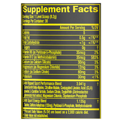 Cellucor C4 Sport® - NSF Certified Pre-Workout for Athletes C4 Sport supports elevated energy, endurance and focus with 135mg of caffeine content. NSF certified for athletes. Size. 30 Servings. Flavor. Quantity. FREQUENCY. $21.99 One-Time Purchase. Ships Free! $15.39 Subscribe & Save 30%. C4 Pre Workout Nutrition Label | EOUA Blog Pics of : C4 Pre Workout Nutrition Label. C4 Pre Workout Cellucor. C4 Pre Workout Products Icy Blue Razz 195 Grams Powder. C4 Pre Workout Ings And The New Formula Buzz. Cellucor C4 Extreme Energy Pre Workout 270g Well Fit Protein S. C4 Original Explosive Pre Workout Fruit Punch Flavor 30. C4 Ripped By Cellucor Pre Workout Review Supplement ... C4 Energy Drink C4 Energy Drink nutrition facts and analysis per 16 oz (454 g) let us know if you have any suggestions on how to make this website better. C4 Energy Drink. Daily values are based on a 2000 calorie a day diet. Recommended daily intake of essential aminoacids is provided for 180 lbs person. Cellucor® C4® Original | GNC Details. C4® Original - Fruit Punch is Cellucor's most popular pre-workout powder. With ingredients like creatine nitrate, TeaCrine®, beta-alanine, arginine alpha ketoglutarate and caffeine, C4® Original will continue to deliver explosive energy and focus to help push you through your next workout.*. Contains 150 mg of caffeine anhydrous.