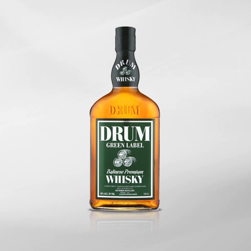 Drum Whisky: Smooth and Elegant - NOW! Bali Produced by Astidama Distillery, Drum Green Label uses only selective malts from the UK and high quality grains from Bali. The whisky is matured in uniquely mixed barrels and aged for 4 years. This process creates a unique aroma, taste and finish. Whisky drinkers will find a unique woody and oaky aroma beside a buttery taste and fruity finish.