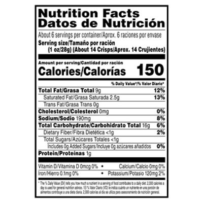Pringles® Original Crisps - SmartLabel™ - Kellogg's Serving Size About 15 Crisps (28 g) Amount Per Serving. Calories. 150. Amount/Serving. % Daily Value*. Total Fat. 9 g. 12%.