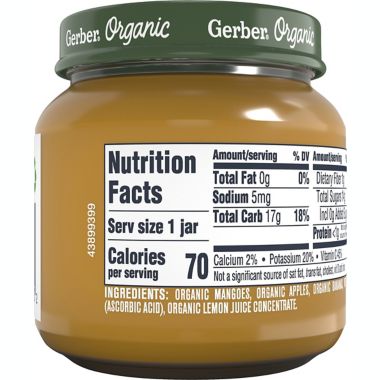 Gerber baby food nutrition label. Gerber Baby Food Nutrition Label - This Nutrition Gerber Baby Food Nutrition Label Last Updated: August 08, 2022 Learn more information about gerber baby food nutrition label. In this article we'll discuss gerber baby food nutrition label. Understanding Nutrition in Relation to Depression Treatment Harnessing the Power of Superfoods for Mental Health The Impact of Nutrition on Cognitive Function Nutrition Facts for Gerber Chicken & Gravy Baby Food Nutrition Facts Serving Size jar 1 jar = 71g Amount Per Serving 90 Calories % Daily Value* 9% Total Fat 6g 8% Saturated Fat 1.5g Trans Fat 0g 17% Cholesterol 50mg 2% Sodium 40mg 1% Total Carbohydrate 2g 0% Dietary Fiber 0g Total Sugars 0g 0% Includes 0g Added Sugars Protein 7g 0% Vitamin D 0mcg 0% Calcium 0mg 2% Iron 0.4mg 2% Potassium 90mg * Gerber Peas: Calories, Nutrition Analysis & More | Fooducate A 1 cup serving has less than 150 calories but comes with the following benefits: 9 grams of fiber (over a third of daily requirement) 9 grams of protein almost no fat 38% of the daily value for vitamin C 26% vitamin A 12% potassium 42% manganese 52% vitamin K Peas are sweet too! You'll get 9 grams of sugar (2 and 1/4 teaspoons) per serving. Shop Baby Food Purees | Gerber Shop Baby Food Baby Food 152 items Gerber is the #1 choice of today's parents. Gerber baby food purees have the fruits and veggies your baby loves. Supplements & Vitamins Formula Baby Cereal Baby Food Snacks Meals & sides Beverages Organic Puree Type Milestones Ingredients Needs Sort by : Price - Low to High Total Products: 152 Items 2nd Foods®